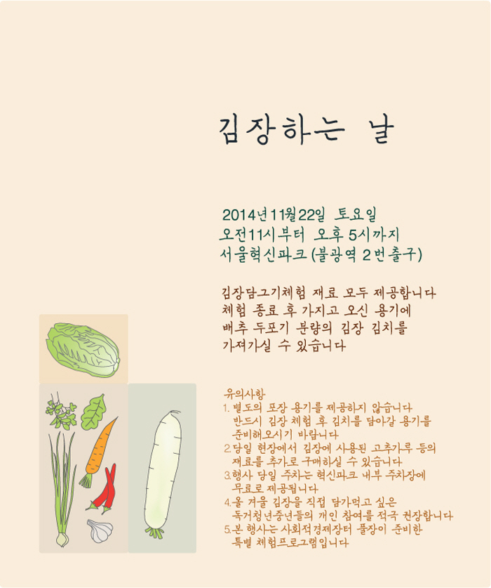 즐겁게 수다떨며 간단히 김장 체험하고, 김치 2포기 받아가세요!