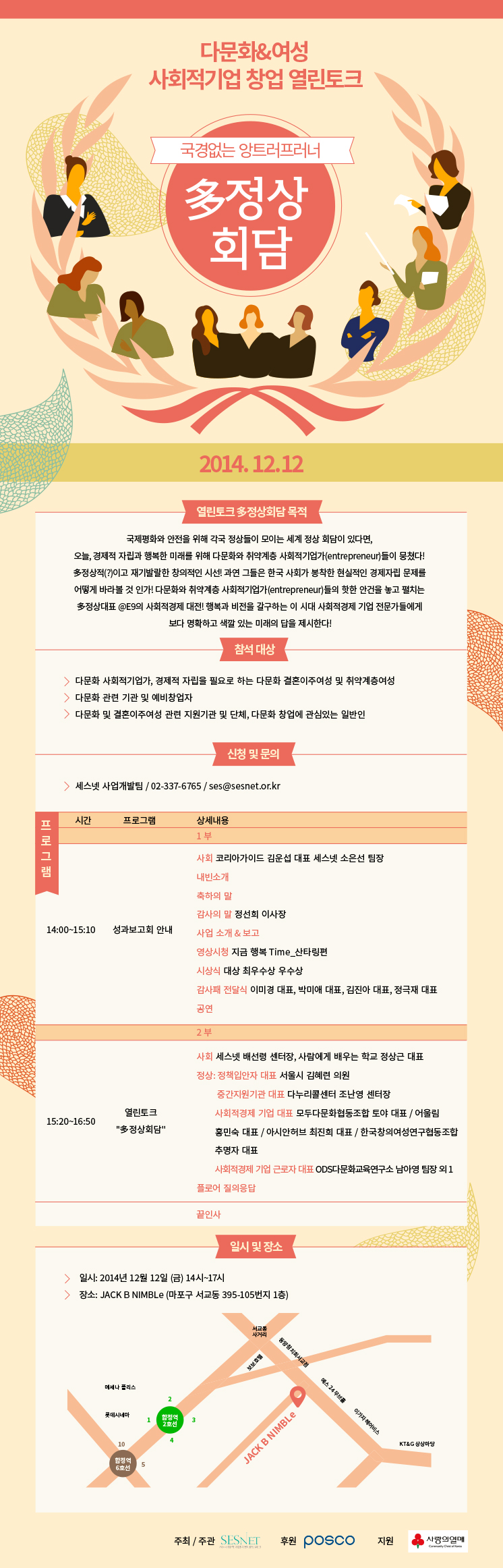 [초대] 다문화&여성사회적기업 창업 열린토크 ‘多정상회담’ 이 열립니다 (12/12)