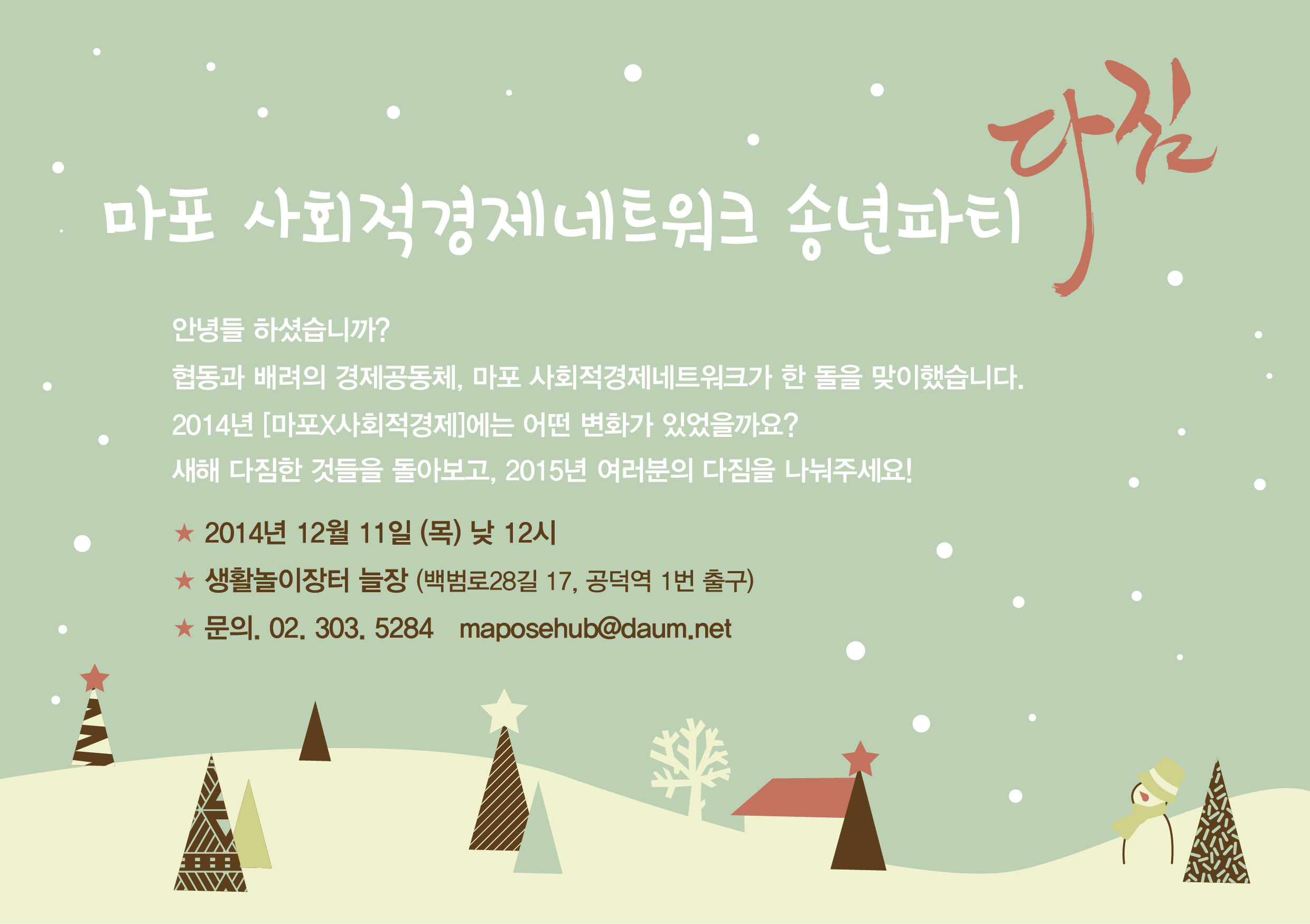 [안내] 마포 사회적경제네트워크 송년파티에서 여러분의 ‘다짐’을 나눠주세요! (12/11)