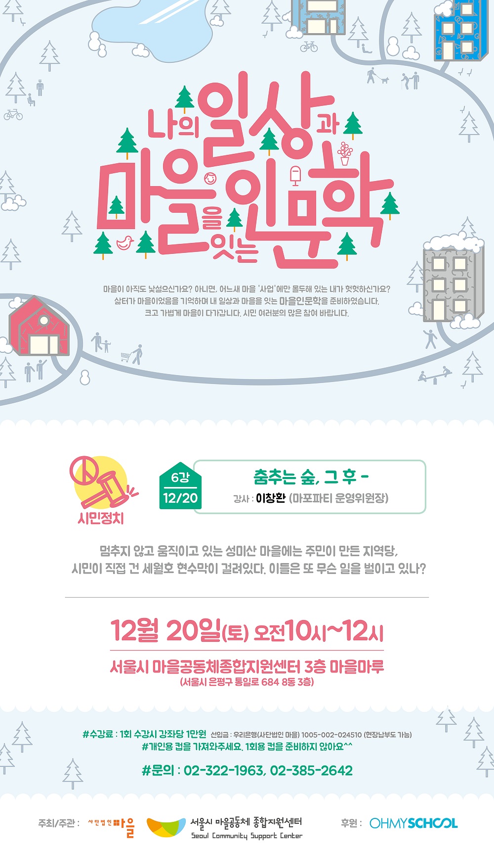 [안내] 마을인문학 6강 ‘춤추는 숲, 그 후’ (강사-이창환’마포파티 운영위원장) 12/20