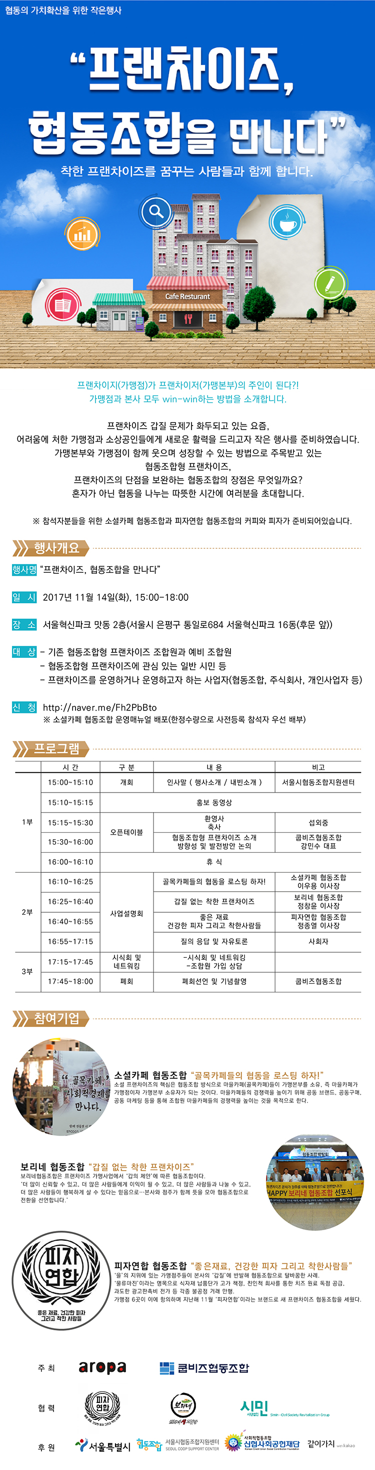 [안내] “프랜차이즈 협동조합을 만나다” – 협동조합형 프랜차이즈 설명회(11.14)