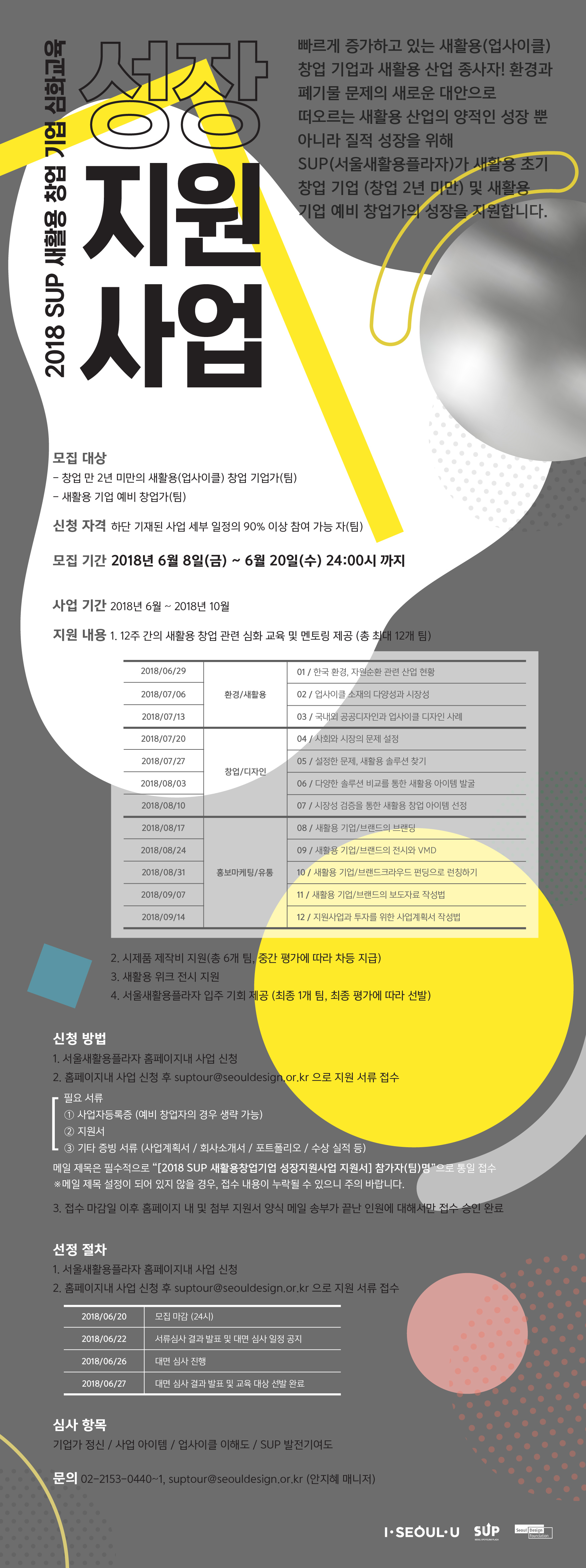 [서울새활용플라자] 2018 SUP 새활용창업기업 성장지원 사업 참여자 모집 안내 (~6/20까지)