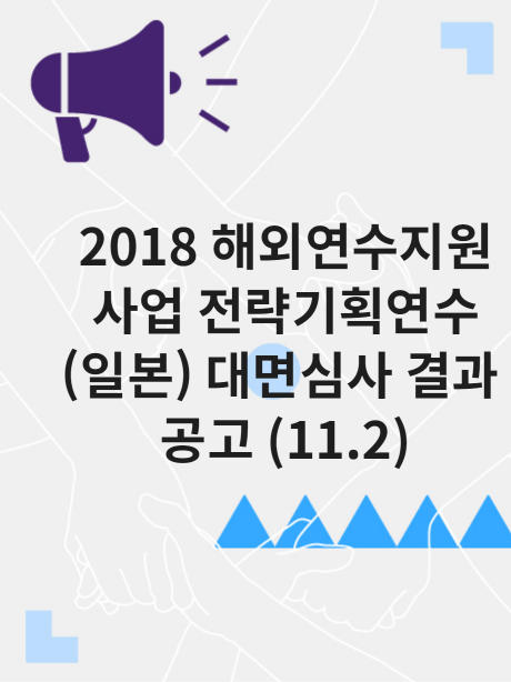 [공고] 2018 해외연수지원사업 전략기획연수(일본) 대면심사 결과 공고