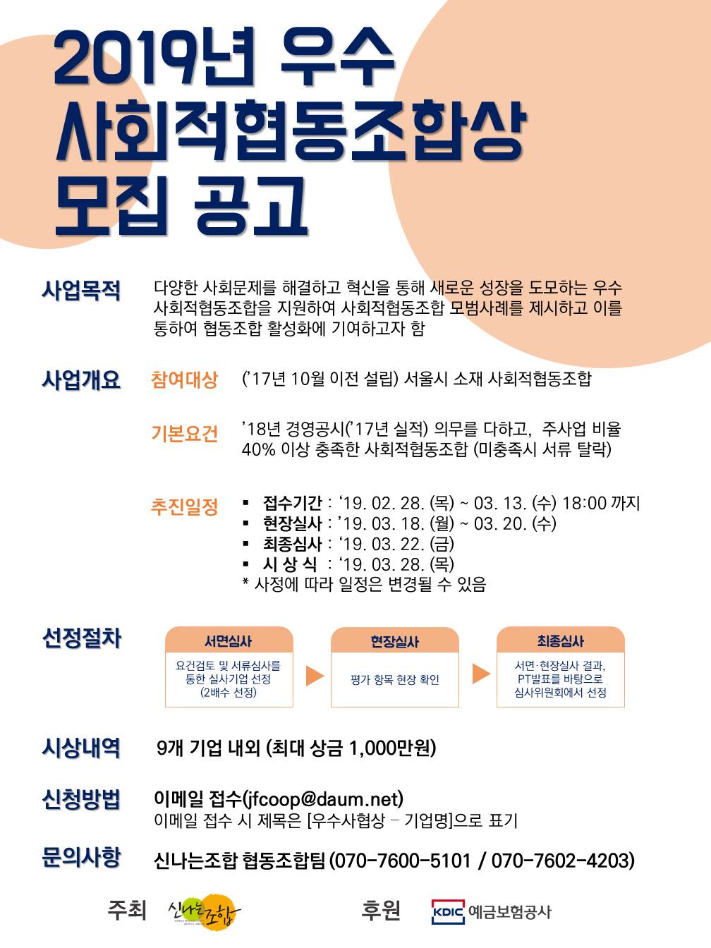 [공고] 「2019년 우수 사회적협동조합상」 모집 공고(~3.13)