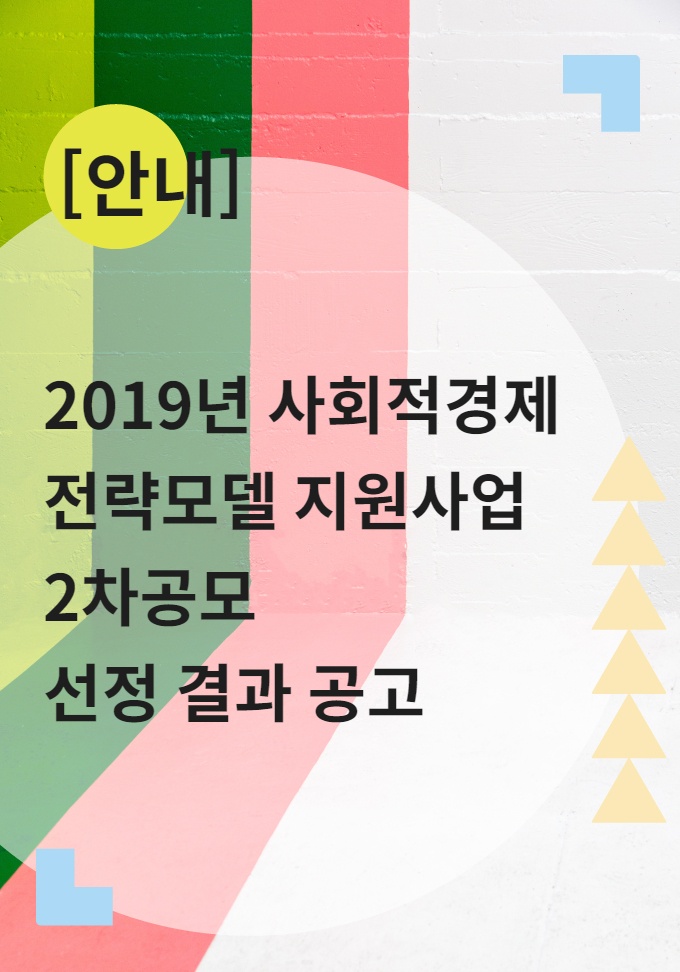 [안내] 2019년 사회적경제 전략모델 지원사업 2차공모 선정 결과 공고