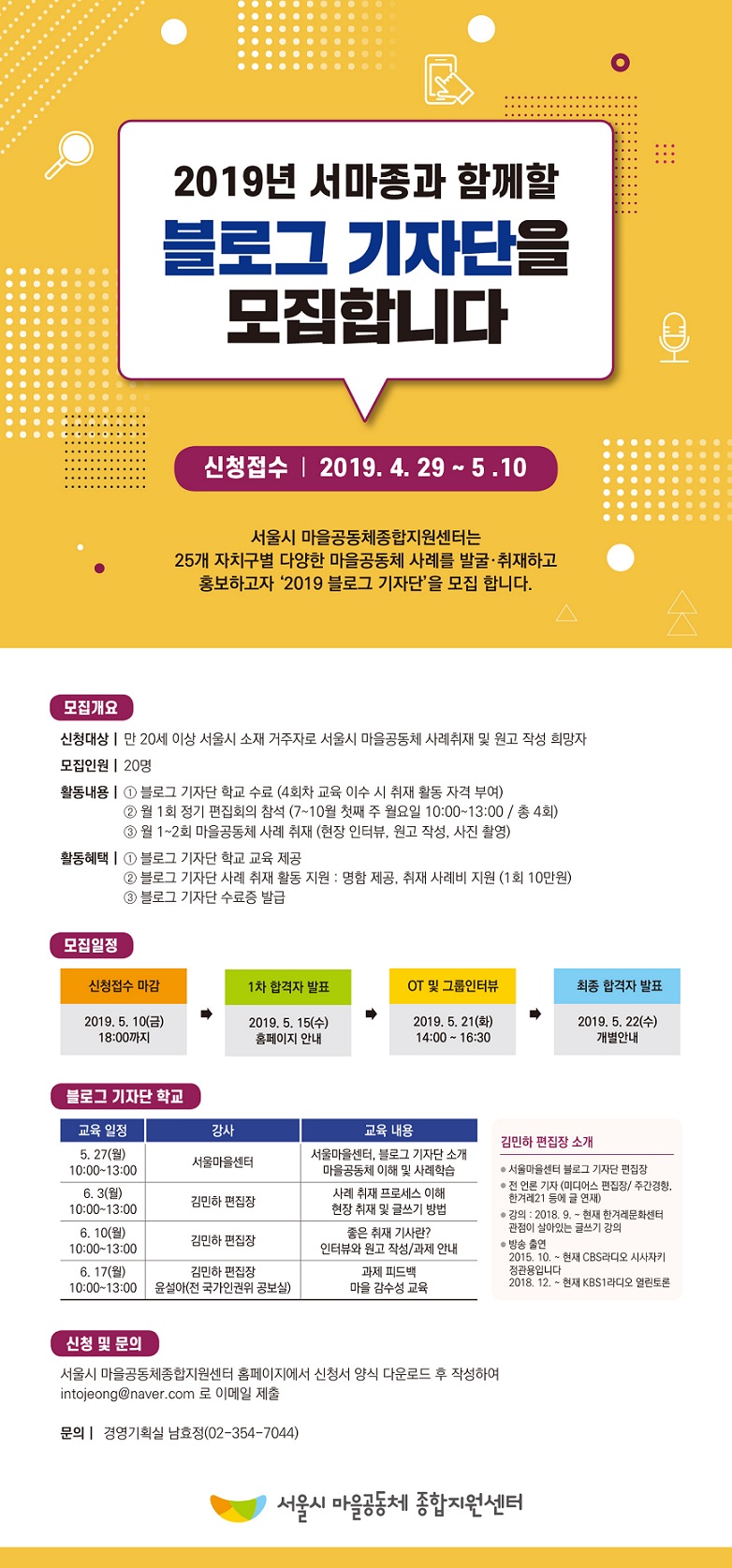 [공고] 2019년 서마종과 함께할 블로그 기자단을 모집(~5.10)