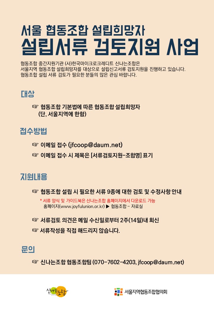 서울 협동조합 설립희망자 설립서류 검토지원 사업
