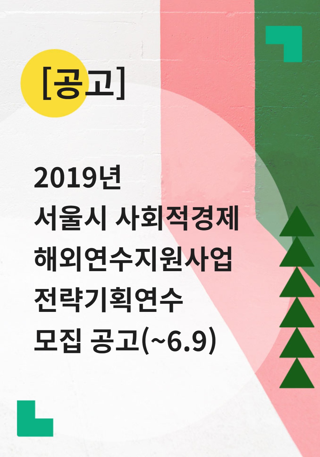 [공고] 2019년 서울시 사회적경제 해외연수지원사업 전략기획연수 모집(~6.9)