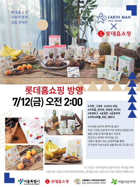 [안내]사회적기업 “어스맨” 롯데홈쇼핑 입점 판매 방영(7.12)