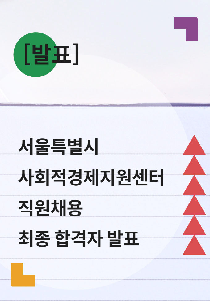 [발표]서울특별시 사회적경제지원센터 직원채용 최종 합격자 발표