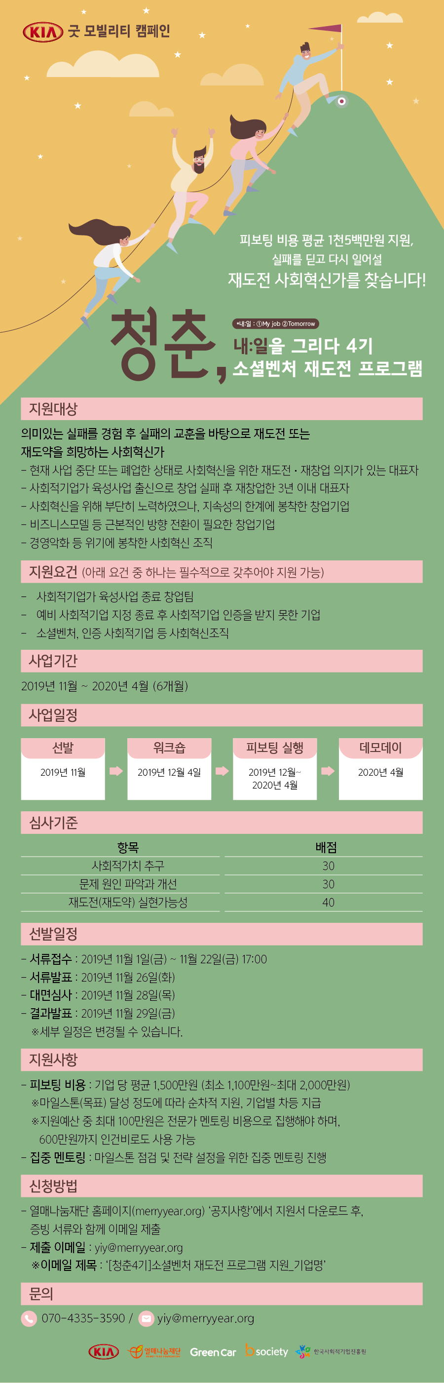 의미있는 실패를 경험 후 재도전 또는 재도약을 희망하는 사회혁신가 여러분의 많은 관심과 참여 바랍니다.