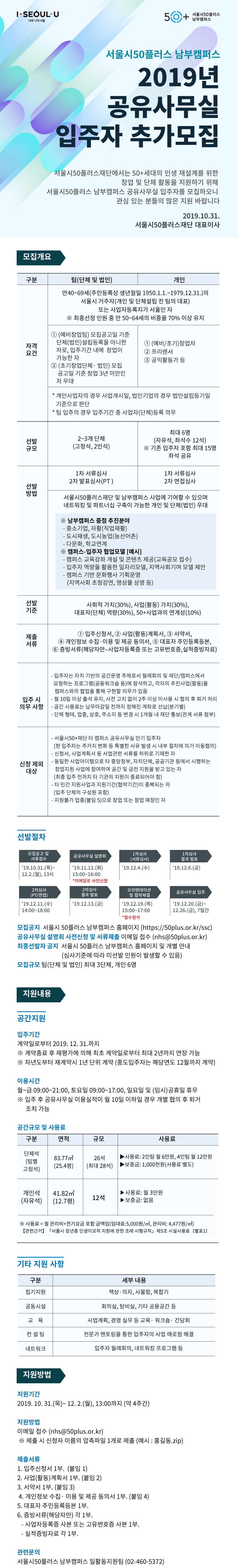 [공고]서울시50플러스 남부캠퍼스 공유사무실 입주자 추가 모집(~12.2)