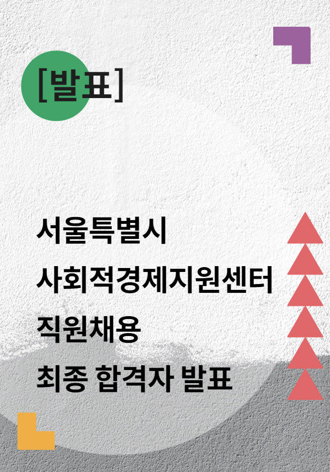 [발표] 서울특별시 사회적경제지원센터 직원채용 최종 합격자 발표