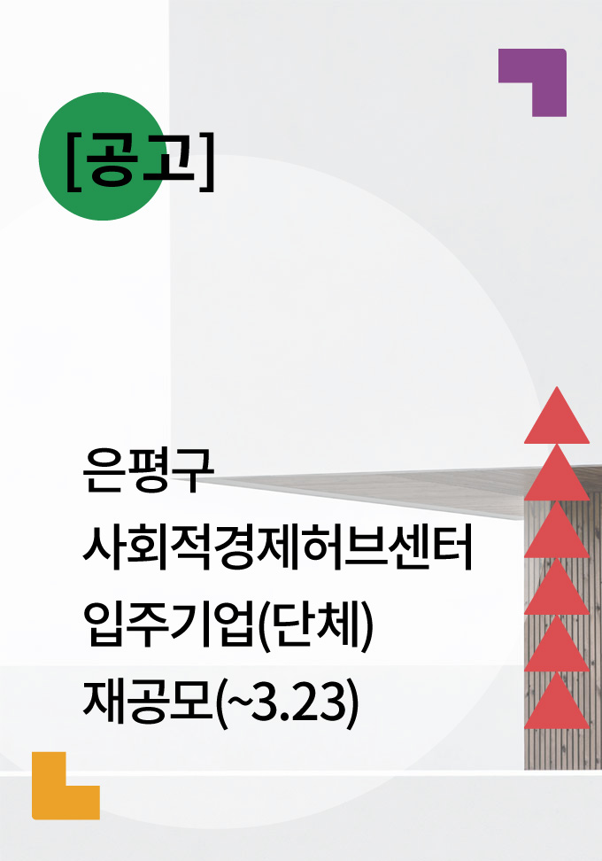 [공고]은평구 사회적경제허브센터 입주기업(단체) 재공모(~3.23)