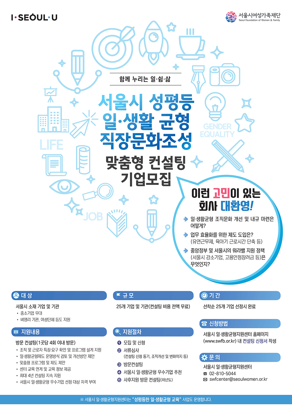 [공고]2020년 서울시 성평등 일생활균형 직장문화조성 맞춤형 컨설팅 대상 모집(~4.24)