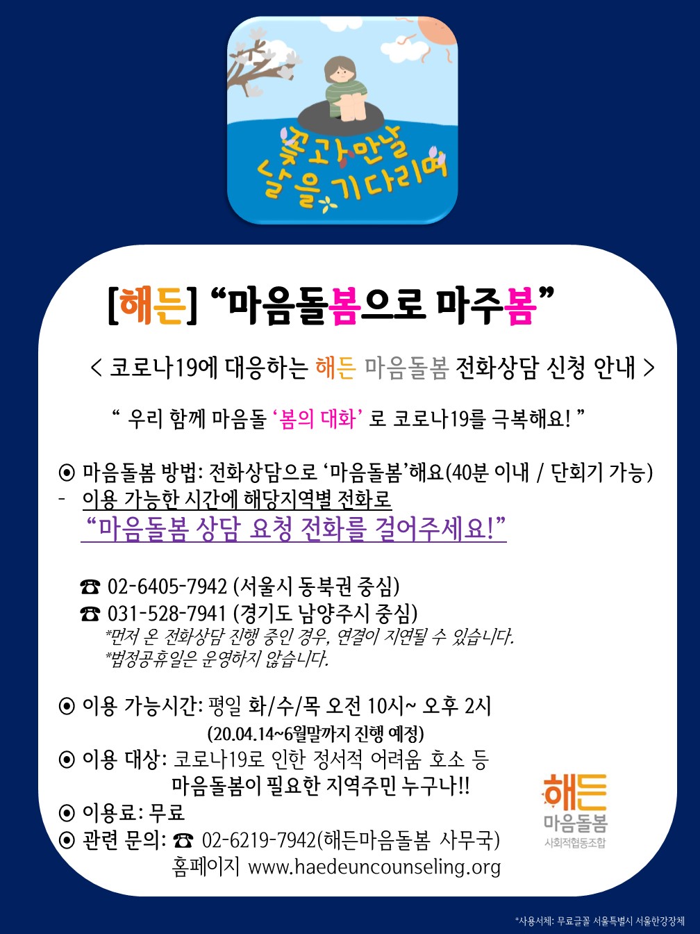 [안내]코로나19에 대응하는 “해든의 마음돌봄” 전화상담 신청 안내