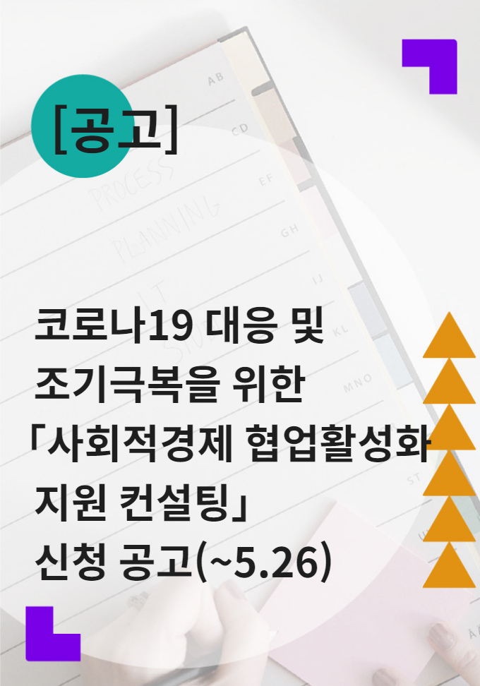 [공고]코로나19 대응 및 조기극복을 위한 「사회적경제 협업활성화 지원 컨설팅」신청 공고(~5.26)