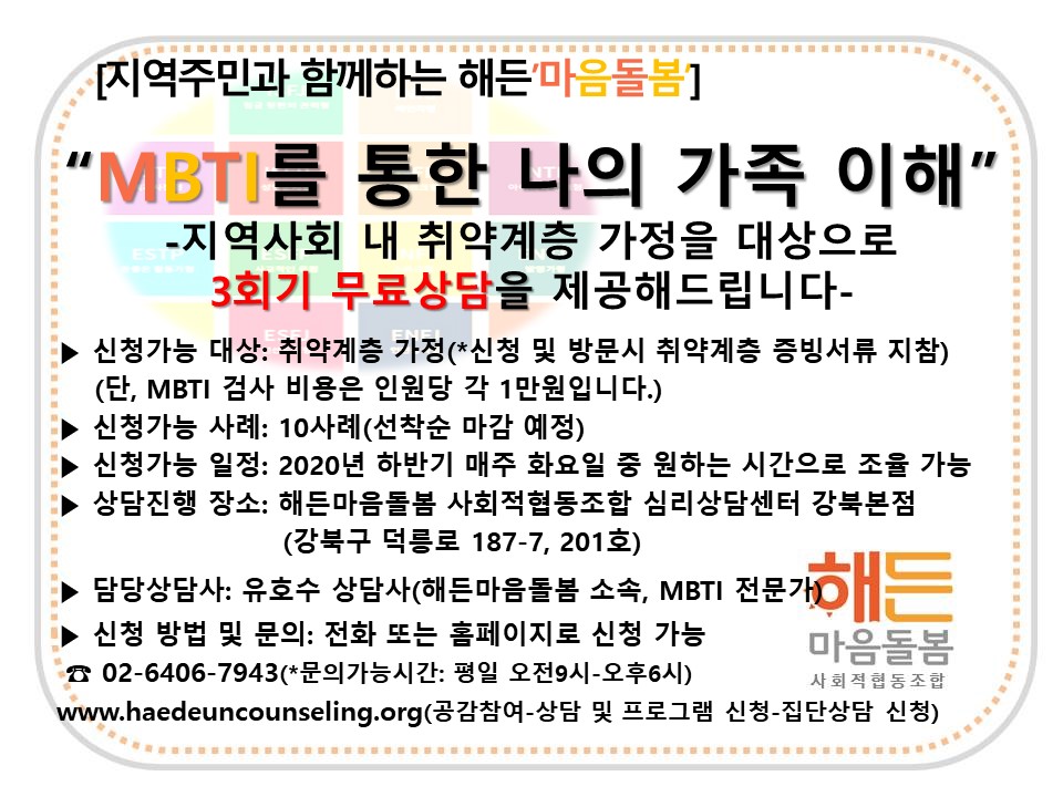 [안내] MBTI를 통한 나의 가족 이해(~선착순)