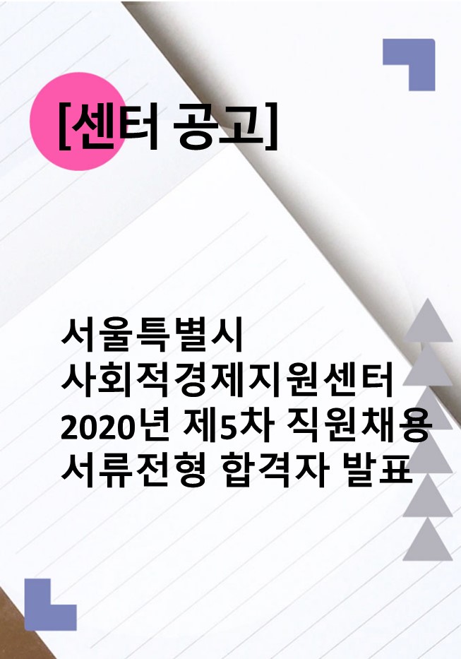 [공고] 서울특별시 사회적경제지원센터 2020년 제5차 직원채용 서류전형 합격자 발표