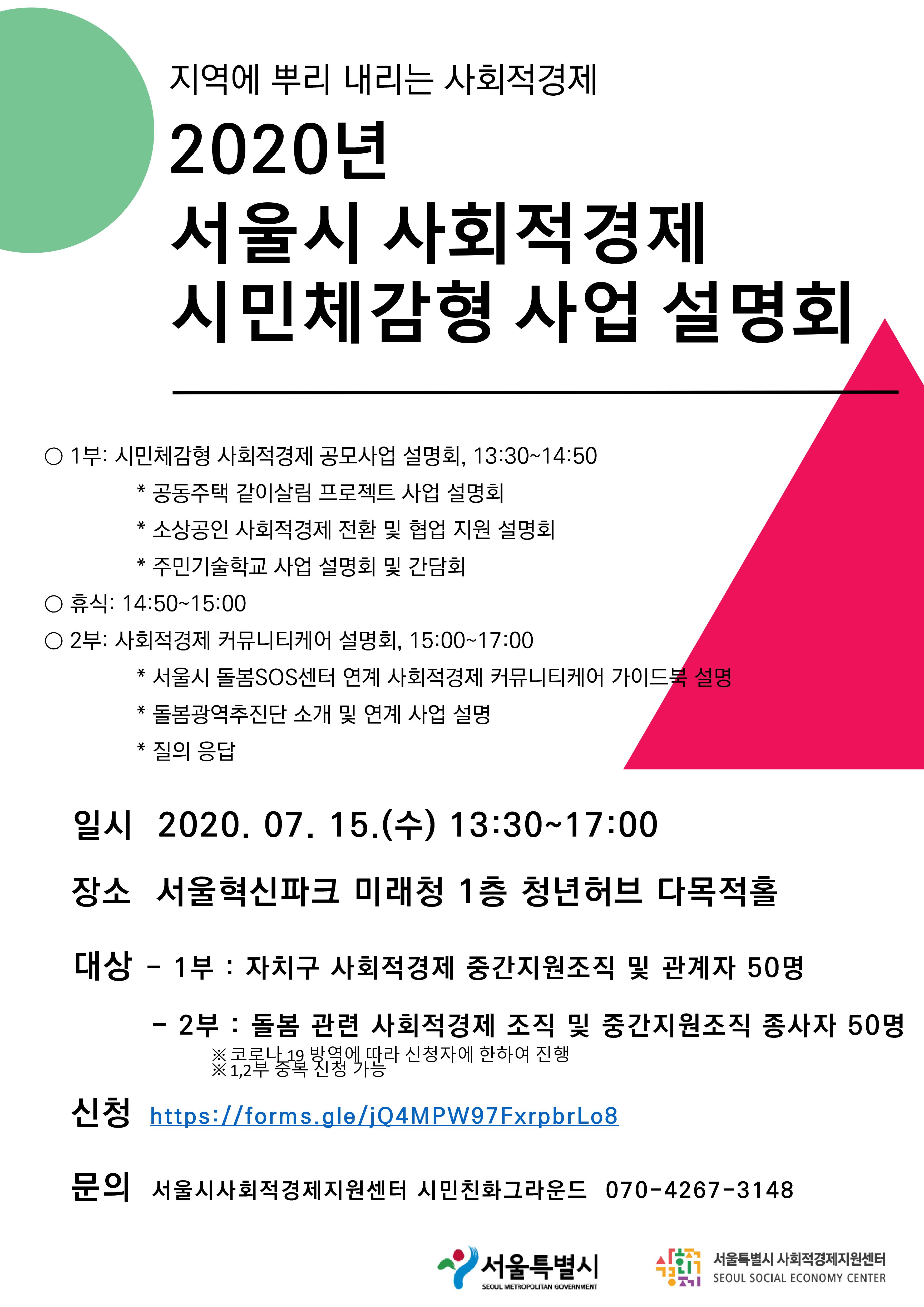[안내] 2020년 서울시 사회적경제 시민체감형 사업 설명회(7.15)