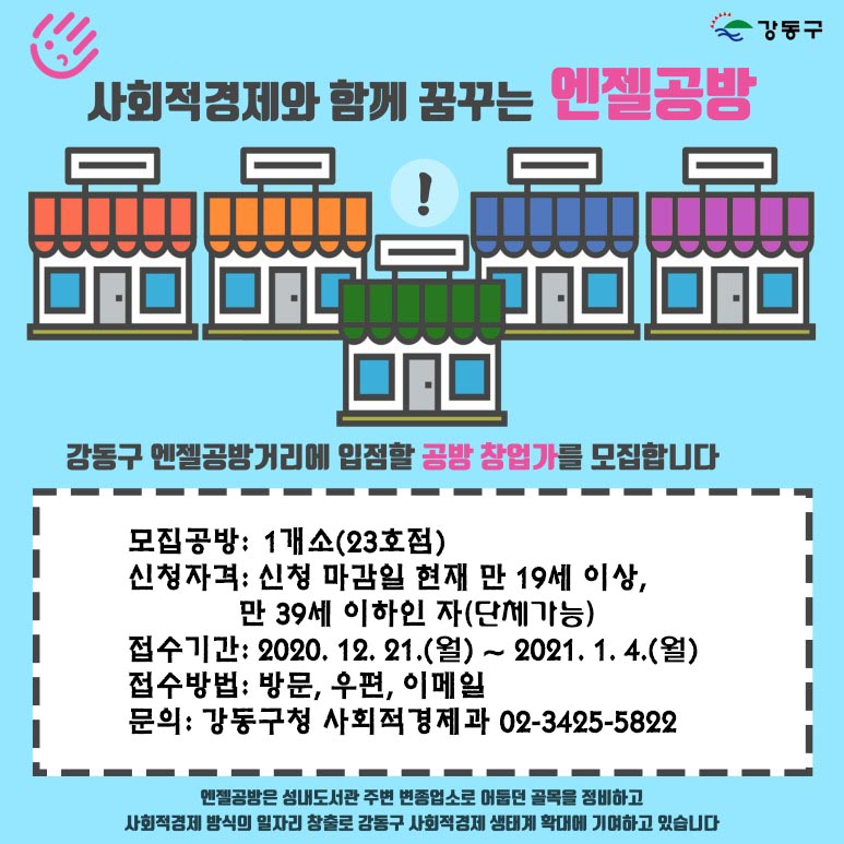 [안내] 강동구 엔젤공방 23호점 운영자 모집(~21.1.4)