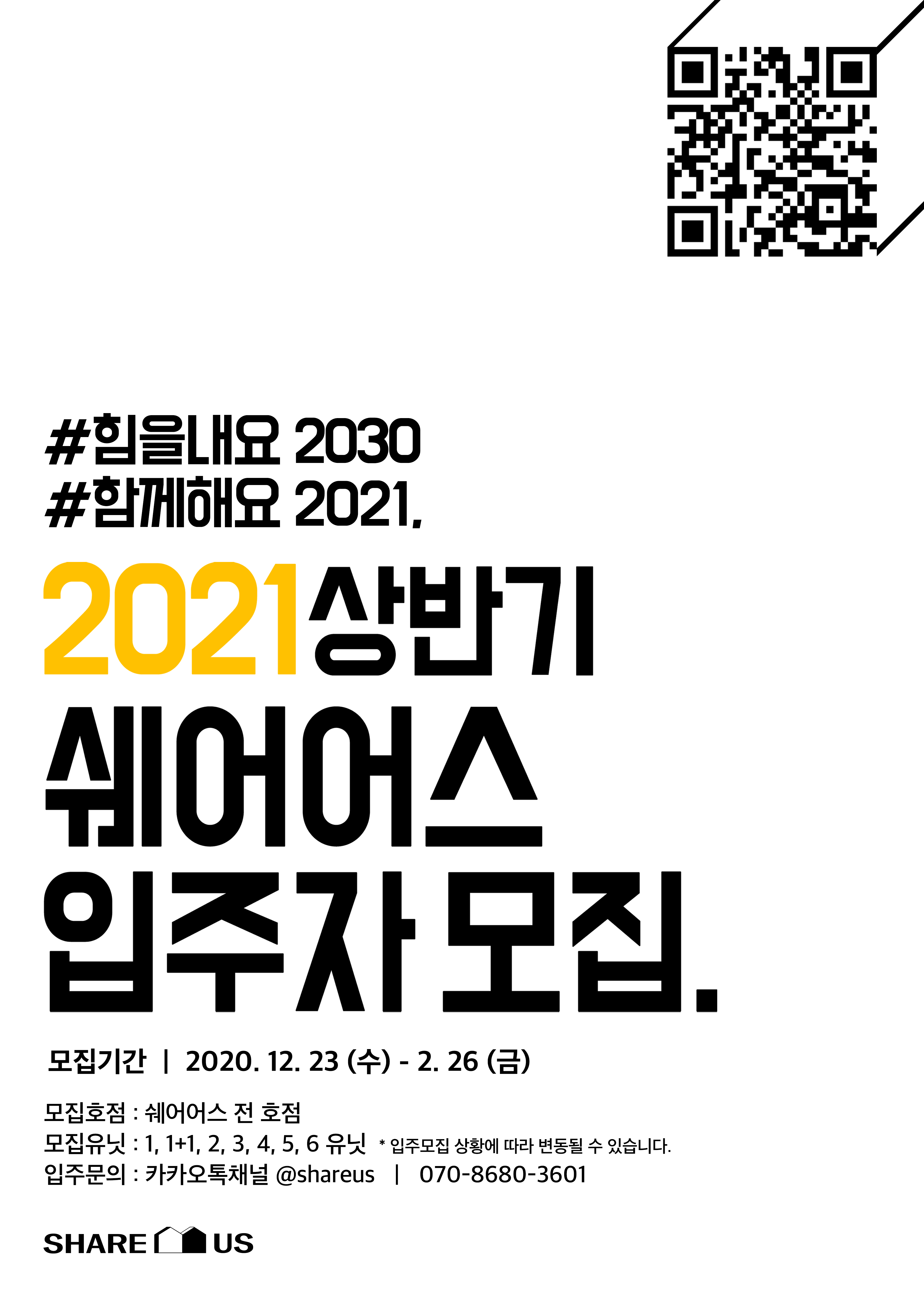 [안내] 쉐어어스 2021 상반기 입주자 모집(~21.2.26)