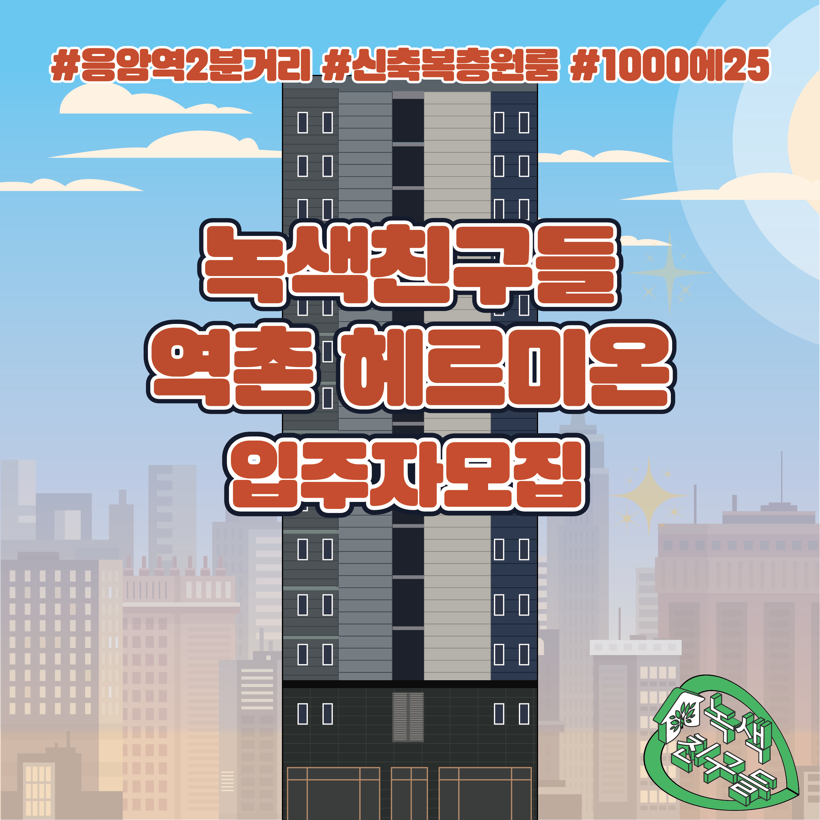 <역촌 헤르미온>은 119세대 규모의 오피스텔로, LH 사회적 주택입니다. 사회적주택은 청년 주거비 경감 및 안정적 주거지원을 위해 사회적 경제주체(녹색친구들)가 한국토지주택공사 매입임대주택을 활용하여 다양한 주거 서비스 프로그램 등의 임대운영, 관리를 직접 수행하는 임대주택입니다.