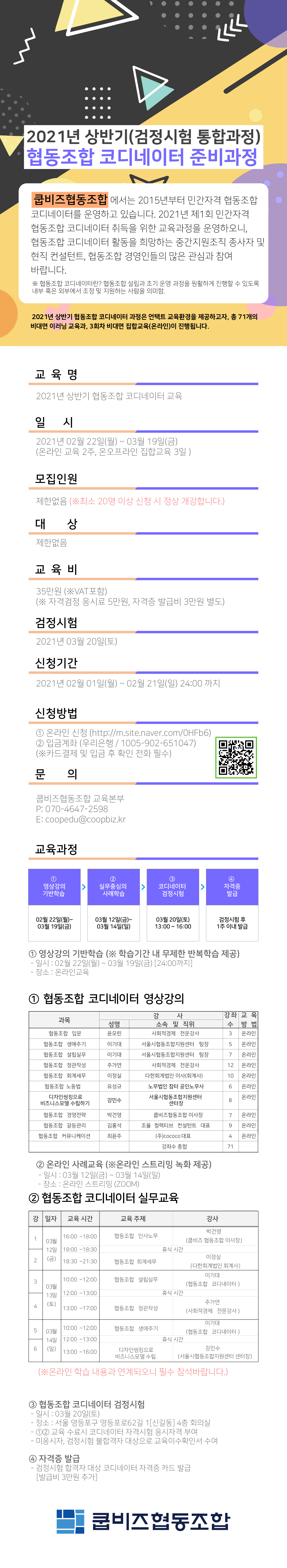 [안내] 2021년 상반기 협동조합 코디네이터 준비과정 모집 (~2.21)
