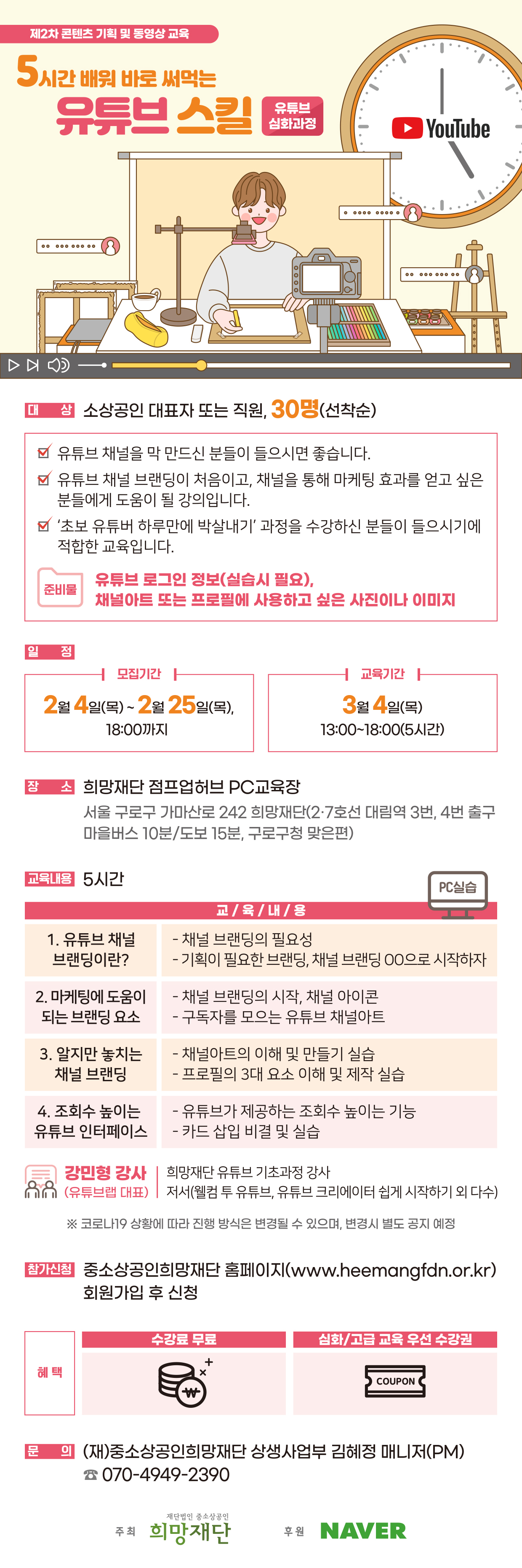 [안내] 5시간 배워 바로 써먹는 유튜브 스킬 교육 진행 (~2.25)