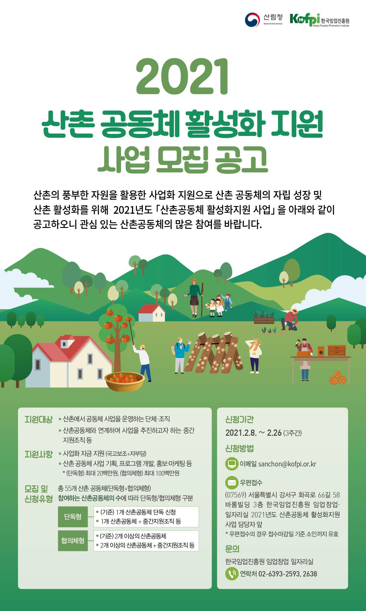 2021 산촌공동체 활성화 지원사업 모집공고 알림