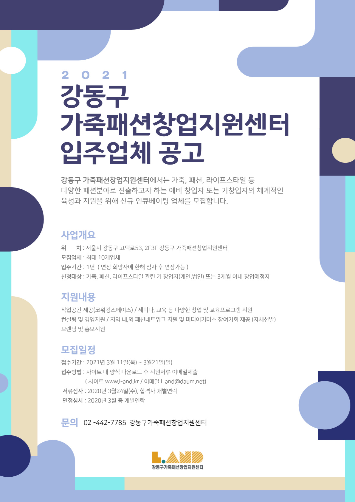 – 강동구 가죽패션창업지원센터 담당자 최재희 (02-442-7785)