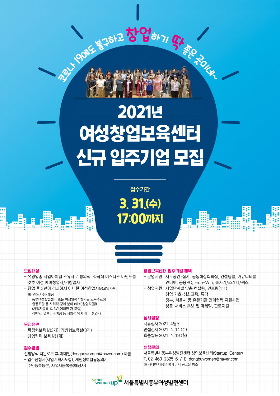 [안내] `21년 서울시동부여성발전센터 여성창업보육센터 신규 입주공고 (~3.31)