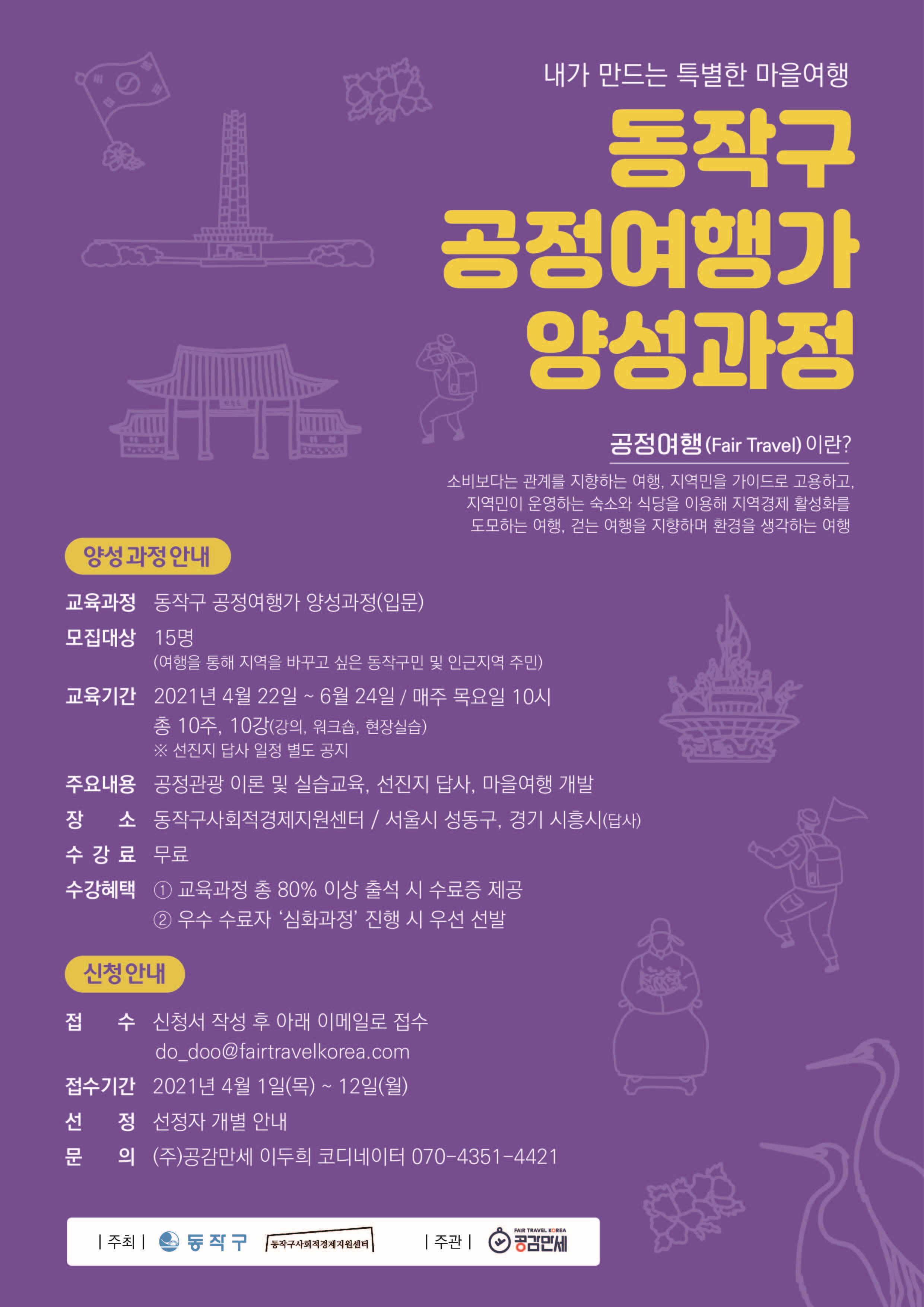 [안내] 동작구 공정여행가 양성과정 모집 안내 (~4.12)