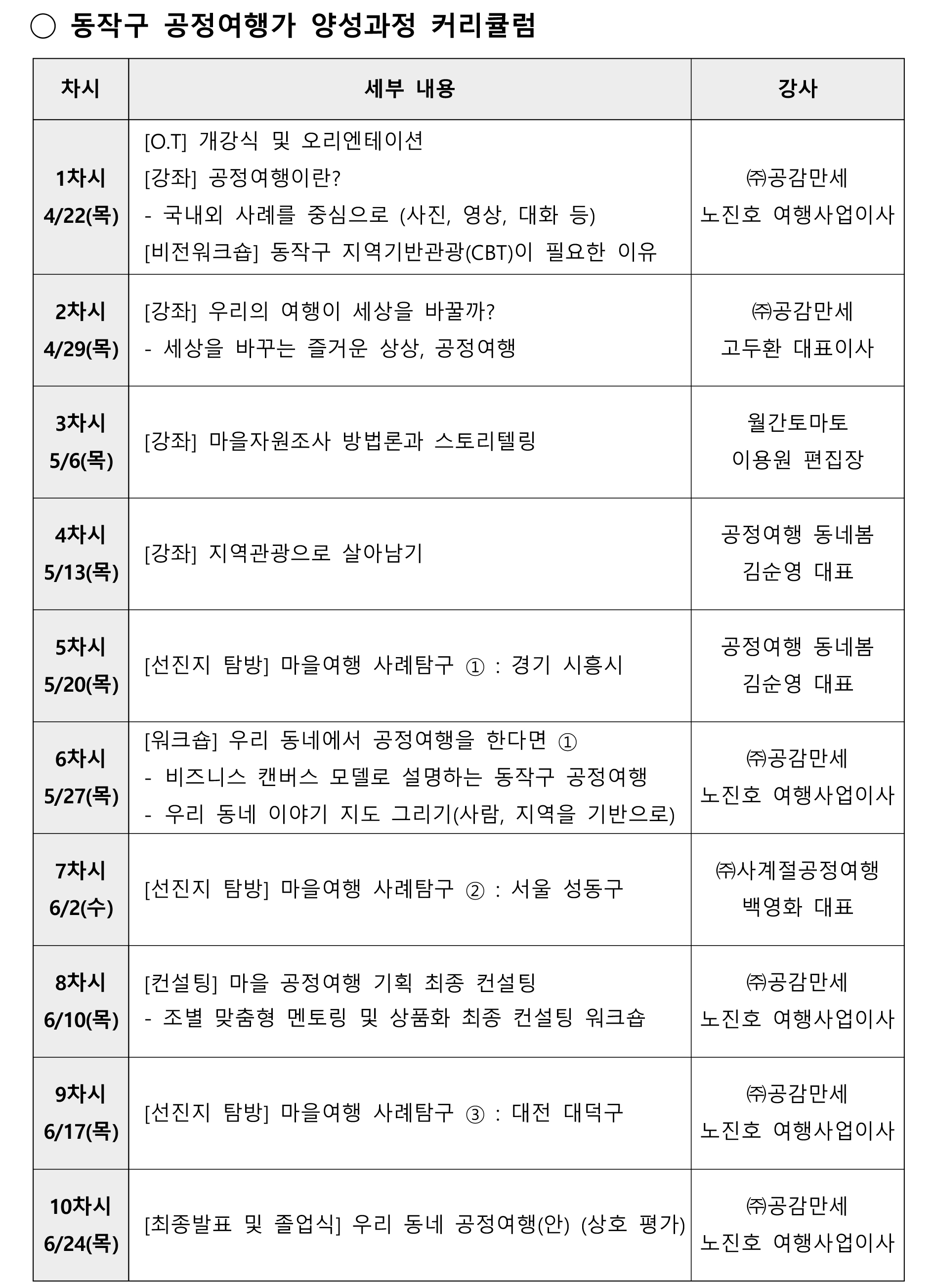 ◎ 교육과정 : 동작구 공정여행가 양성과정(입문)