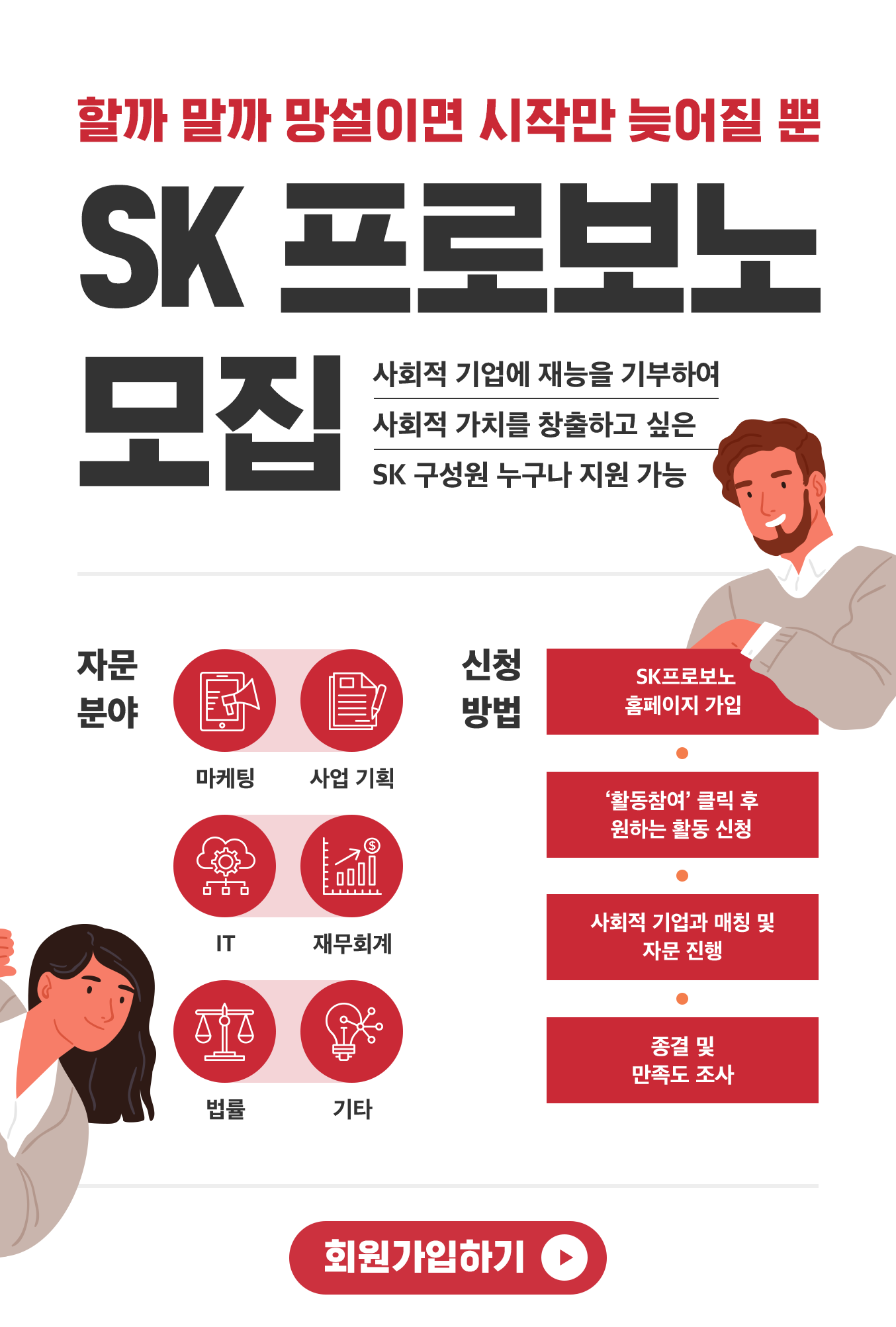 회사의 제안서/계약서의 완성도 증진을 필요로하는 사회적기업을 SK프로보노가 도와드립니다.