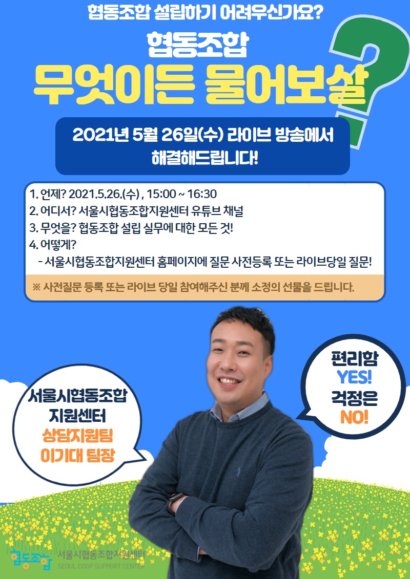 [안내] 협동조합 무엇이든 물어보살? 라이브방송 (설립편) (5.26)