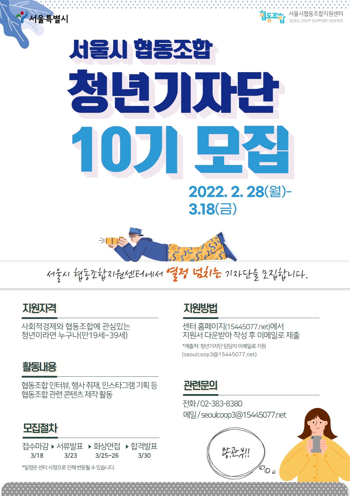 [안내] 2022 서울시협동조합지원센터 청년기자단 10기 모집 (~3.18)