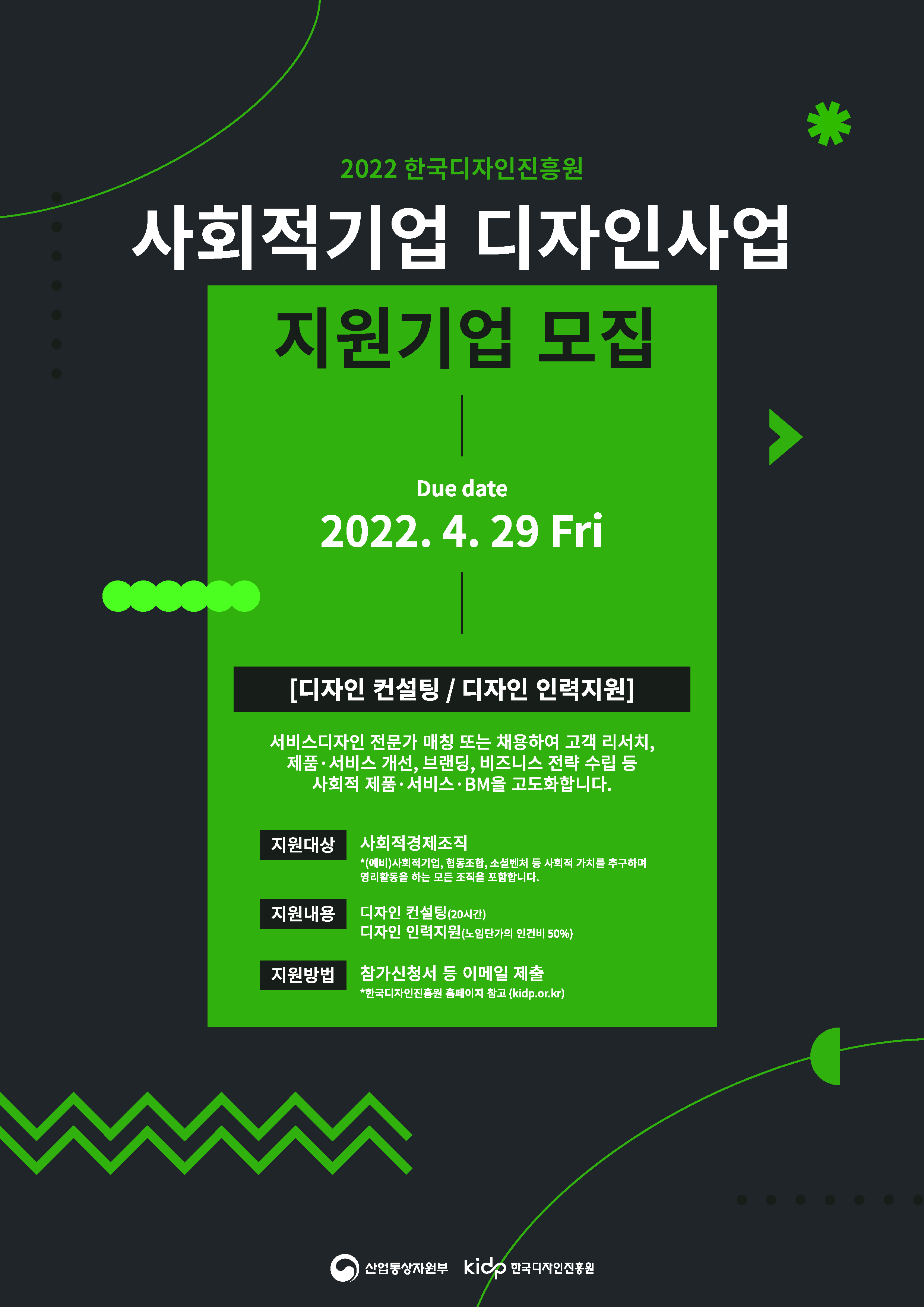[안내] 2022 사회적기업 디자인사업 지원기업 모집 공고 (~4.8 / 4.29)