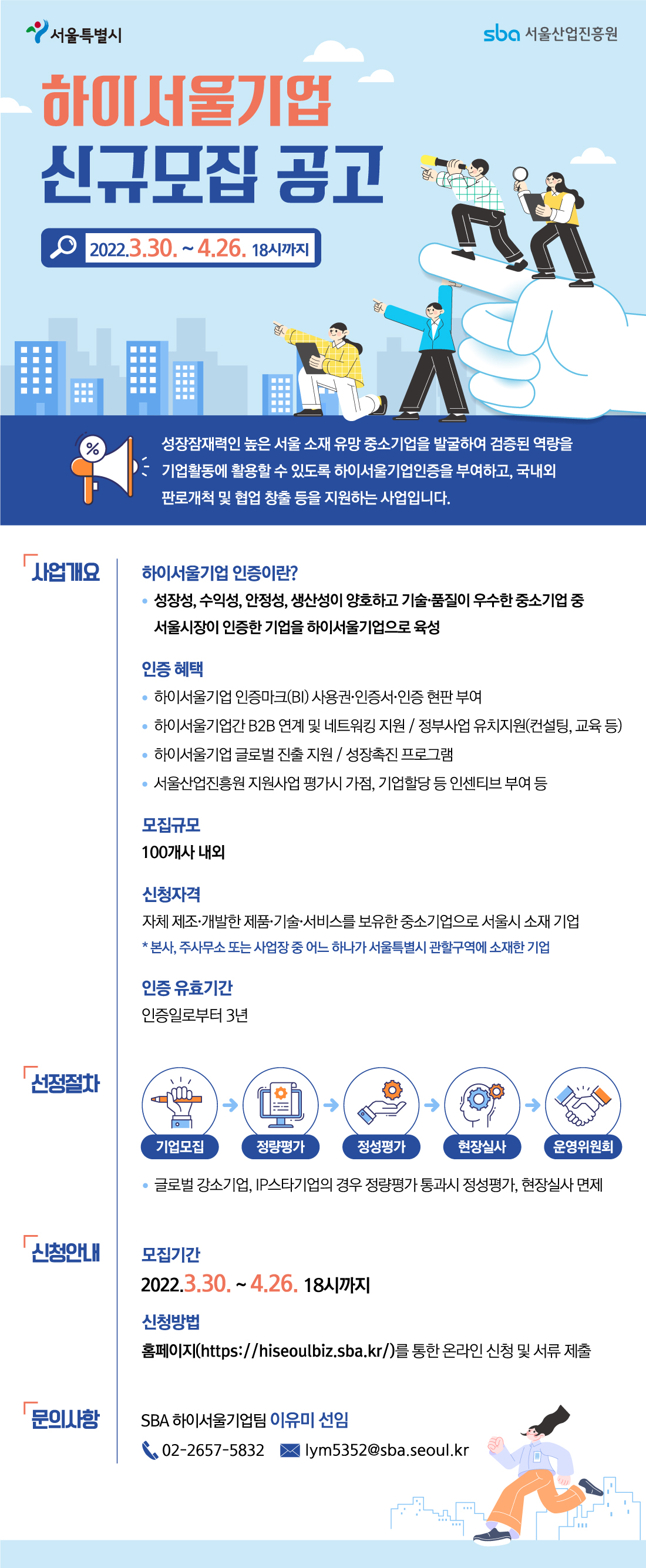 [안내] 2022년 하이서울기업 신규모집 (~4.26)