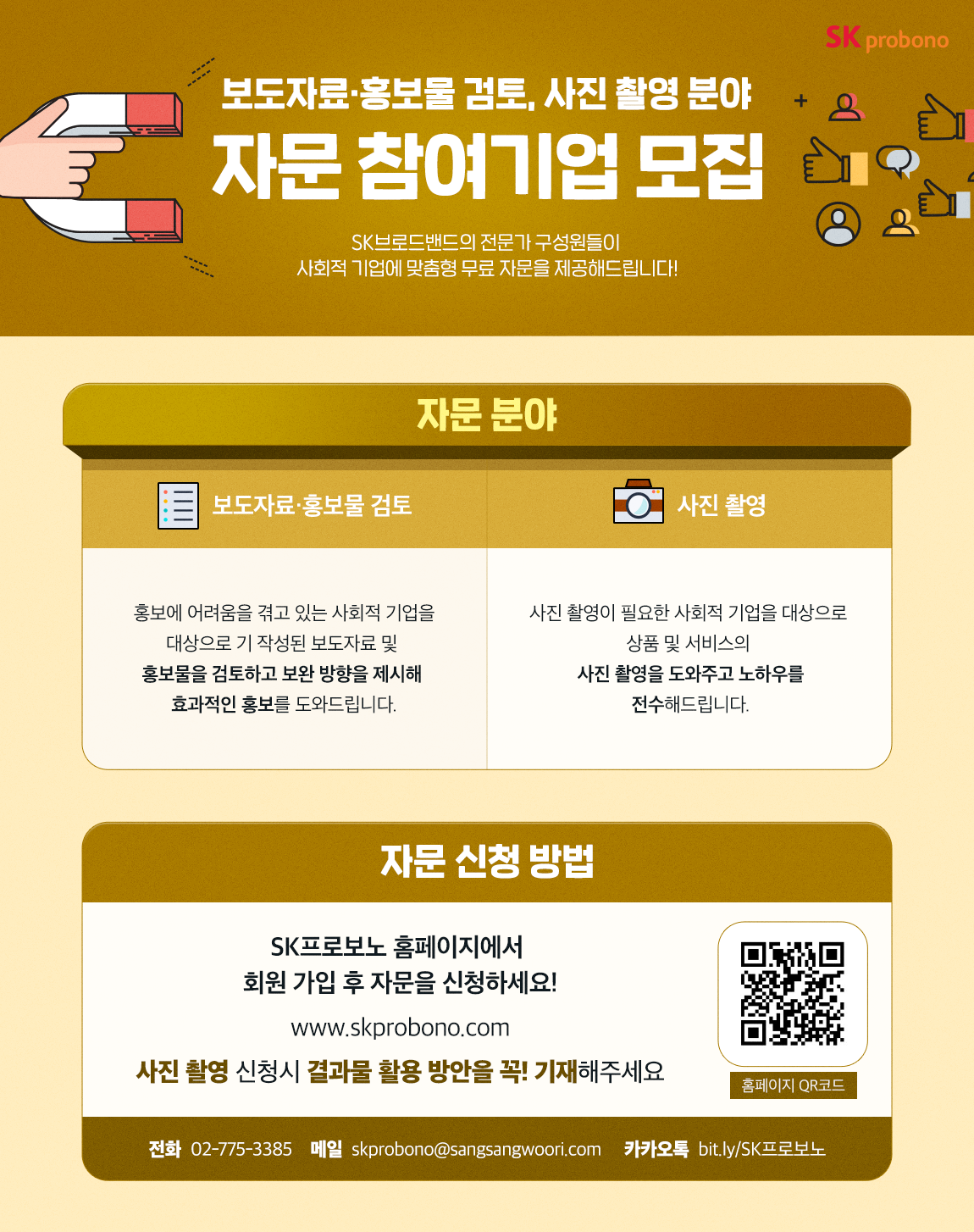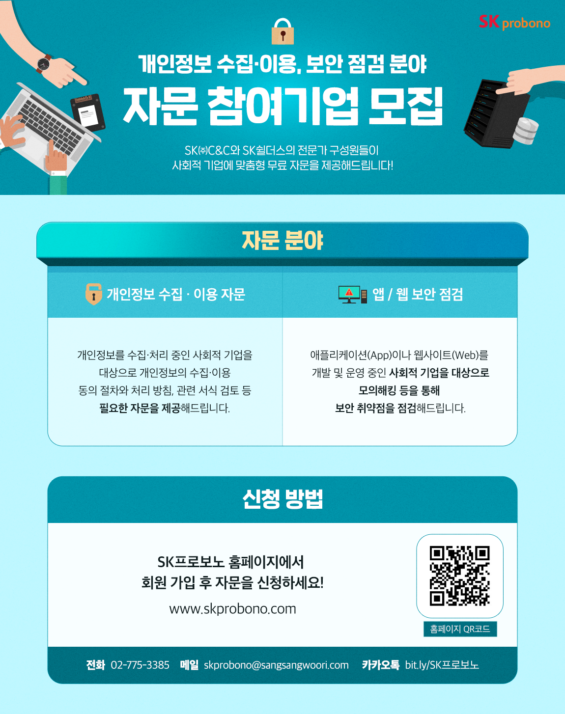 – 회원가입/활동신청 문의 : SK프로보노 사무국 (skprobono@sangsangwoori.com) / 02 – 775 – 3385