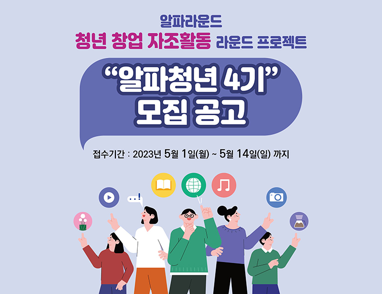 [안내] 청년 창업 자조활동 라운드 프로젝트 “알파청년 4기” 참여 안내 (~5.14.)