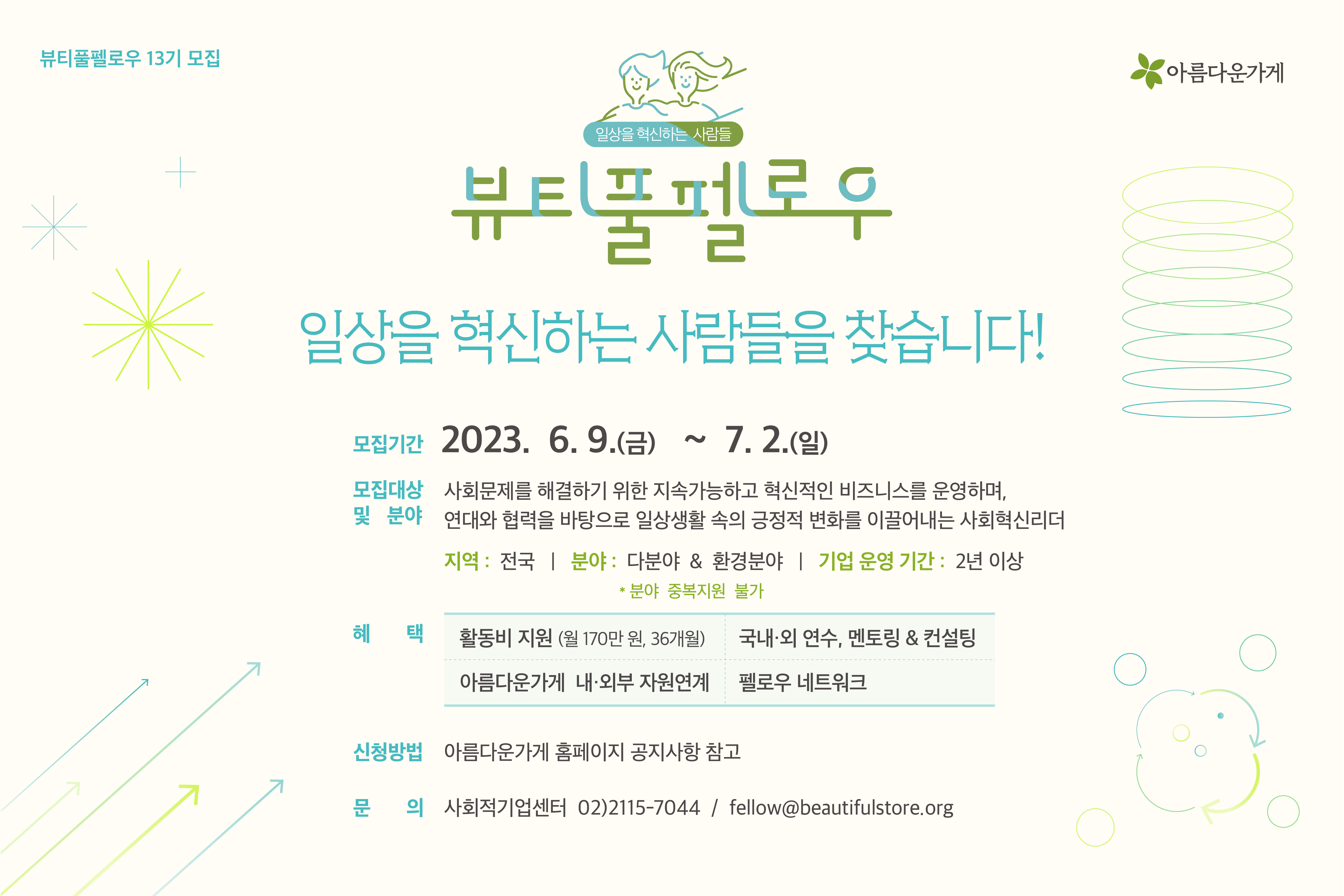 [안내] 아름다운가게 사회혁신리더 지원사업 ‘뷰티풀펠로우’ 13기 모집 (~7.2)