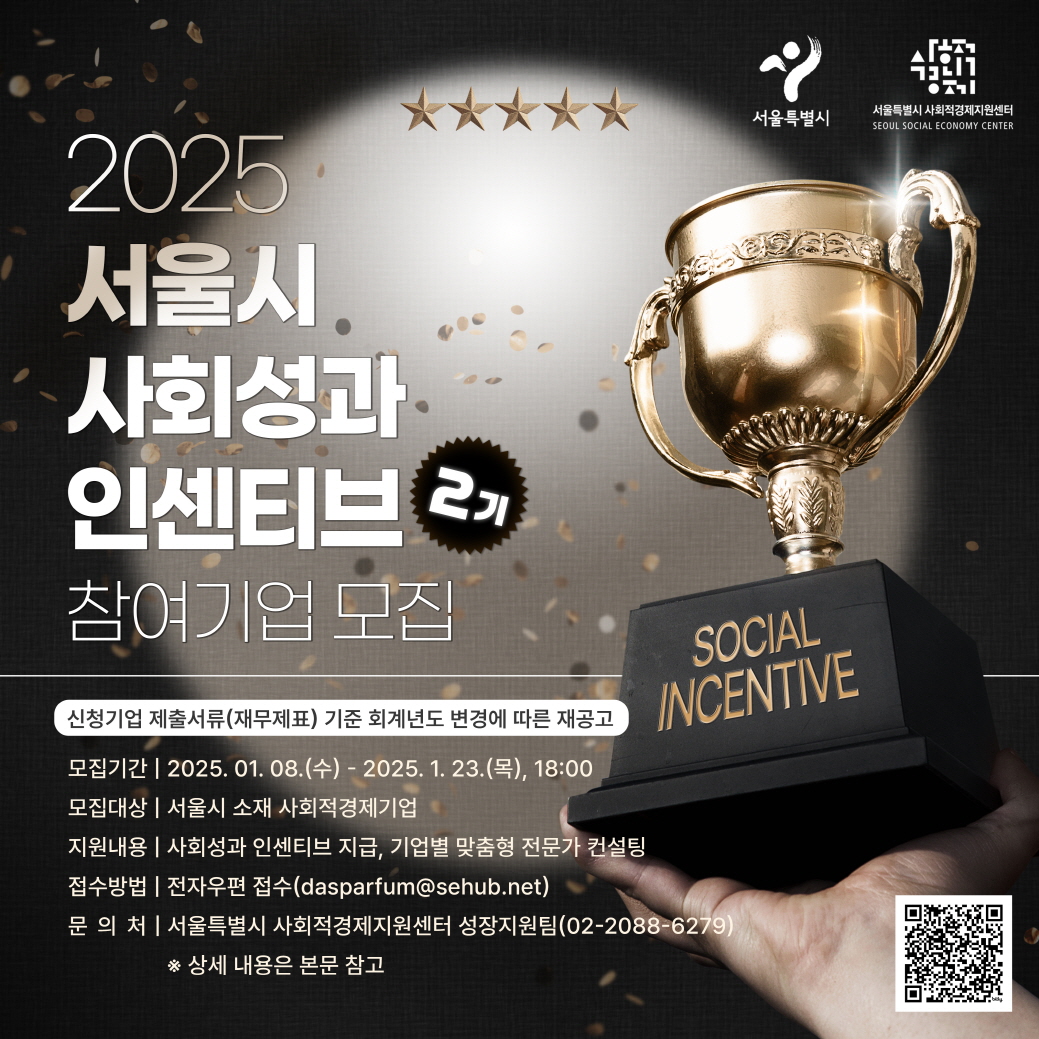 [재공고]2025년 서울시 사회성과 인센티브 사업(2기) 참여기업 모집 공고(~25.1.23. 18:00)
