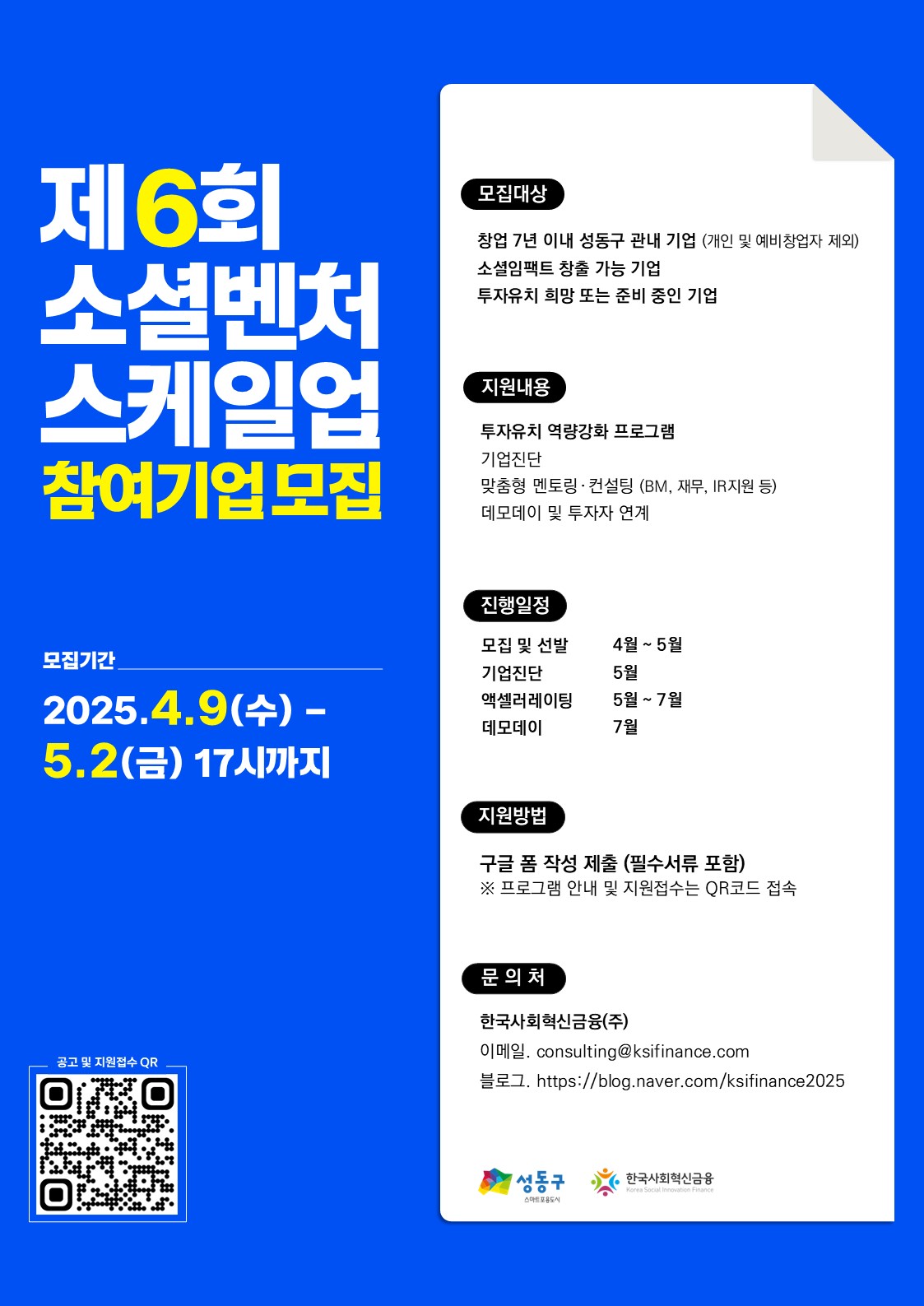 [안내] 제 6회 소셜벤처 스케일업 프로그램 참여기업 모집 (~5/2)