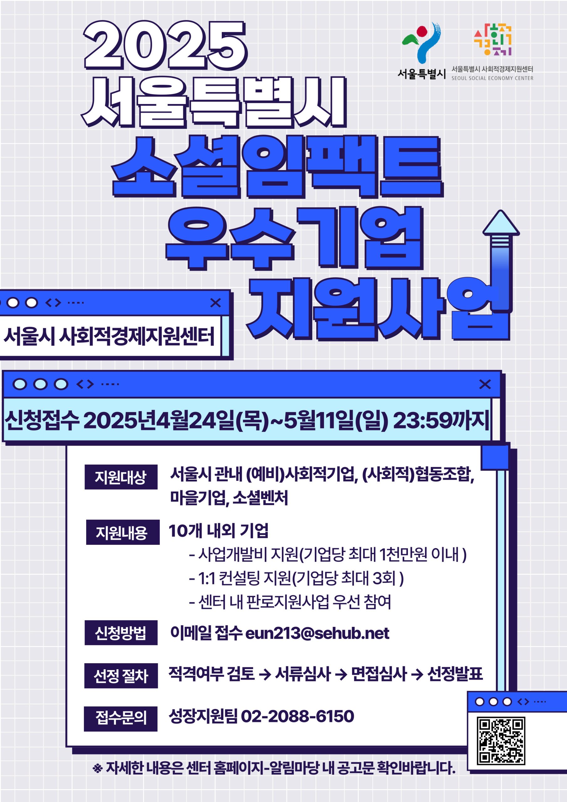 ☞ 문의처 : 서울특별시 사회적경제지원센터 성장지원팀(☏ 02-2088-6150)
