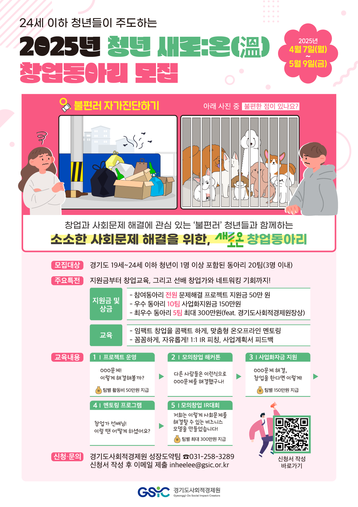 [경기도사회적경제원] 2025년 청년 새로:온 창업동아리 모집(~5.9.)