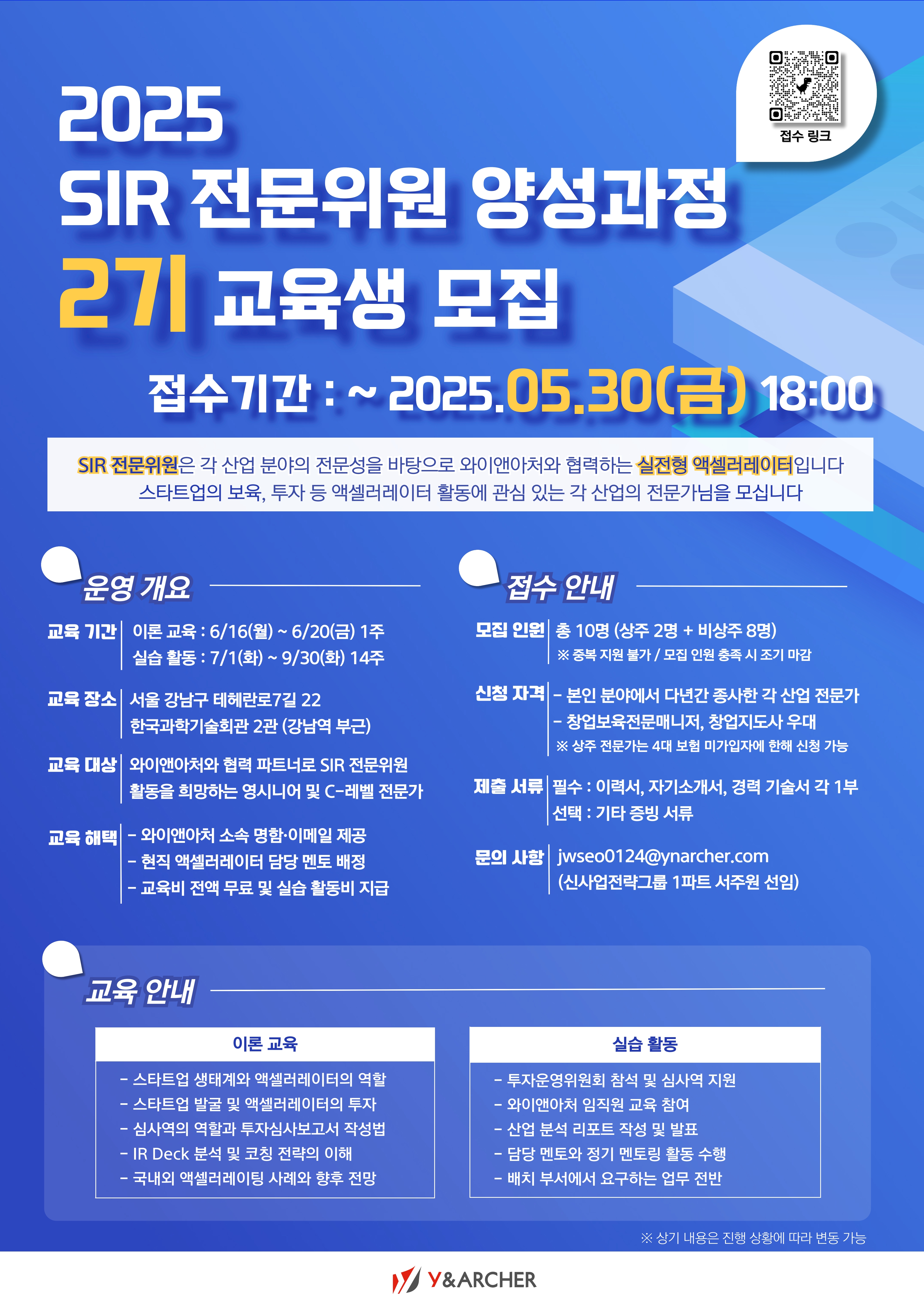 [와이앤아처] 2025 SIR 전문위원 양성과정 2기 교육생 모집 (~5/30 금)