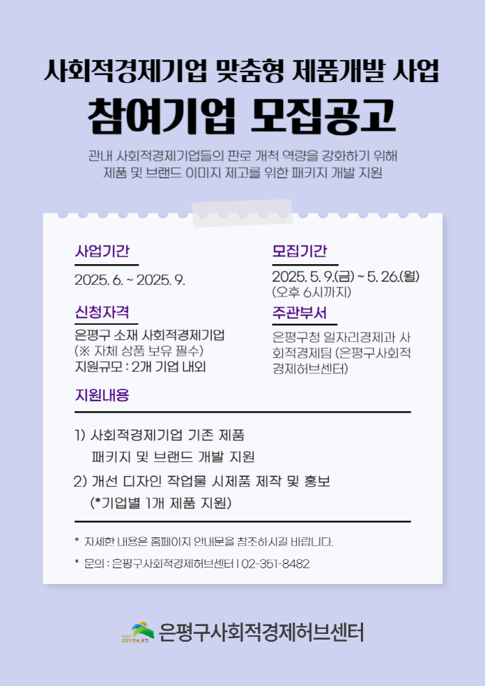 2025년 사회적경제기업 맞춤형 제품 개발 사업 참여기업 모집