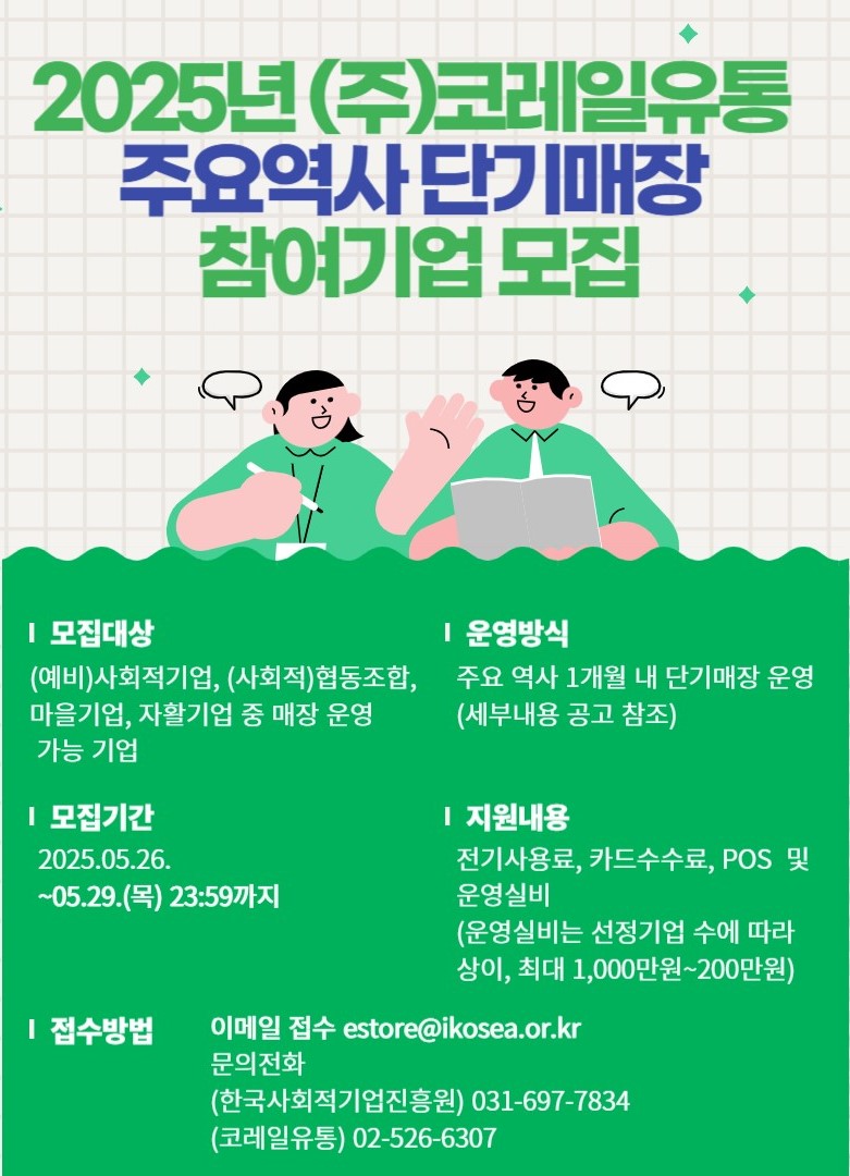 2025년 (주)코레일유통 주요역사 단기매장 참여기업 모집 공고(~5.29.(목))