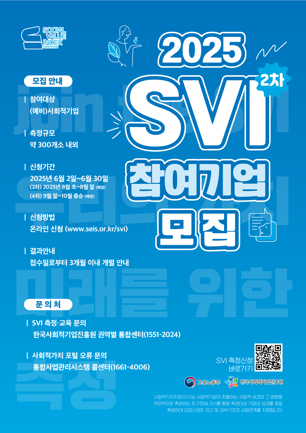 2025년도 사회적가치지표(SVI) 측정기업 2차 모집공고(~6.30.)